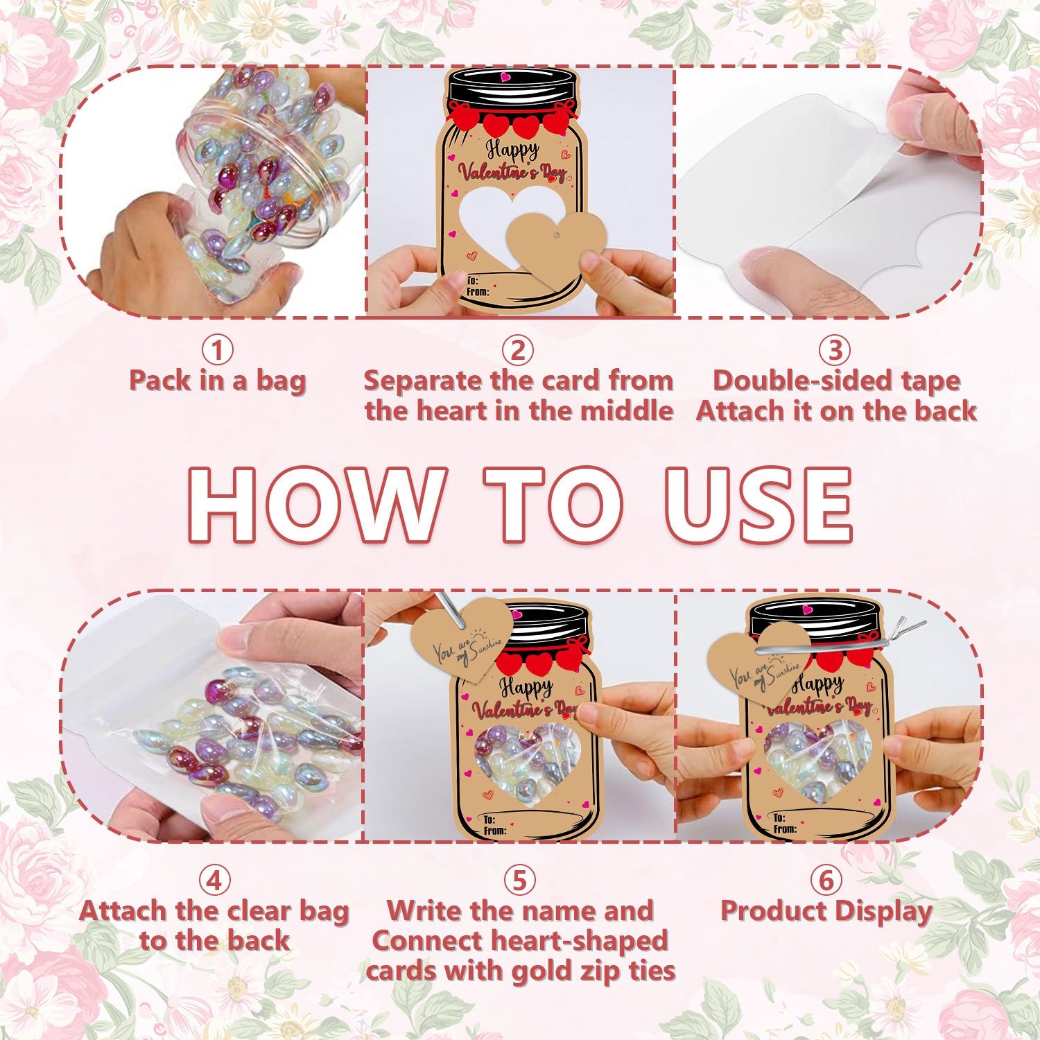 Simply place your favorite treats into the clear bag, then attach it to the back of the card using the included double-sided glue. The cute hollow heart window lets colorful candies shine through ❤️🌈