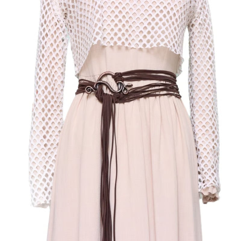Medieval Viking Braided Leather Belt Set, with Ring Buckle & Tassel Decorations